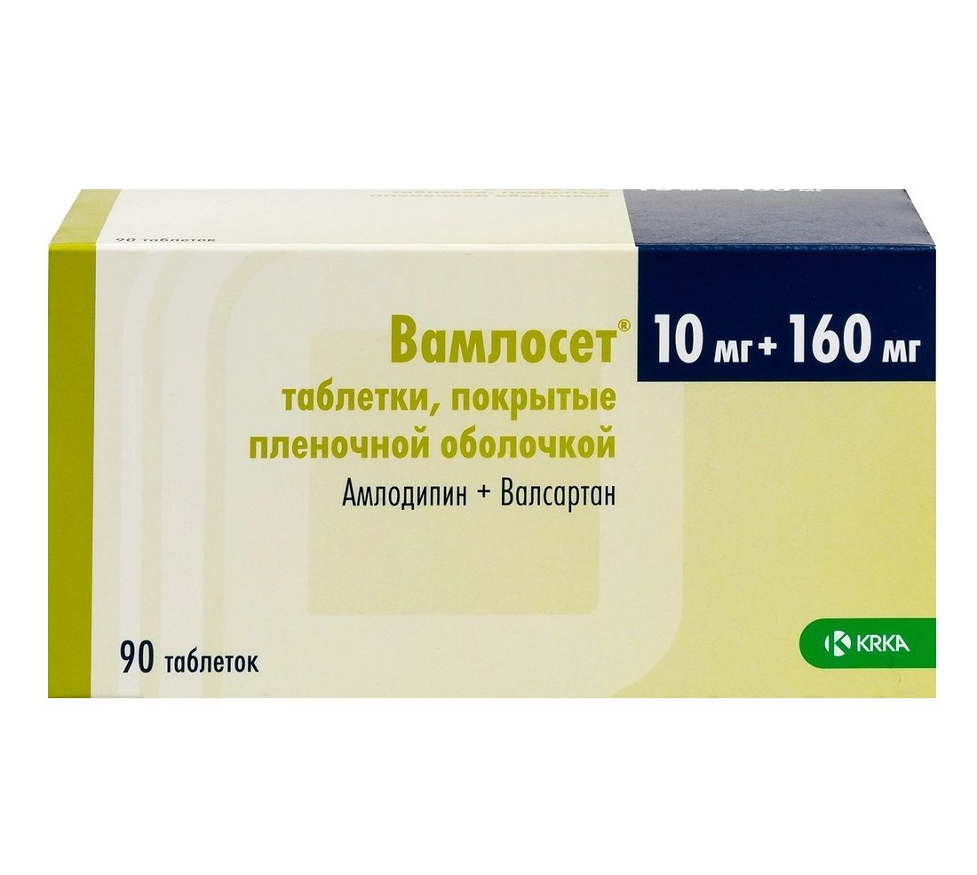 Вамлосет таблетки покрытые пленочной оболочкой 10мг+160мг №90