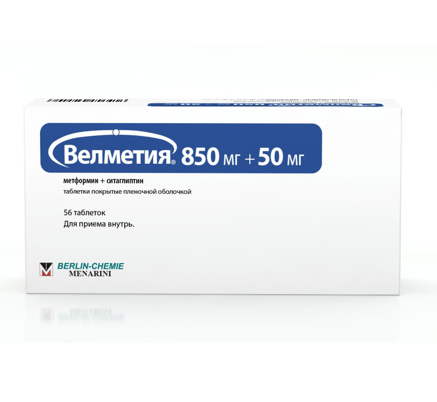 Велметия таблетки покрытые плёночной оболочкой 850мг+50мг №56