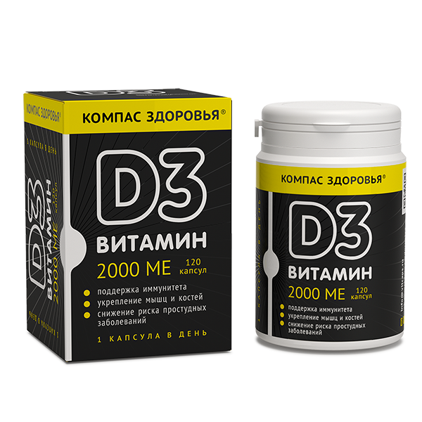 Суточная норма витамина D3 содержится в 20 яйцах, 4 килограммах говяжьей печени, 5 литрах молока. Применение витамина Д3 «Компас Здоровья» упрощает процесс восстановления и улучшает функционирование всех органов всего за 1 капсулу в день!