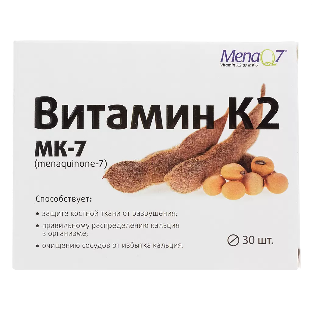 Витамин К2 - Ваш помощник на пути к хорошему самочувствию. Витамин К2 (менахинон), принадлежит к витаминной группе К. Витамин К2 имеет две формы МК-4 и МК-7, незначительно отличающиеся между собой, но МК-7 имеет более высокий уровень биодоступности за счет более длительного периода полураспада, что позволяет сохранять более стабильную концентрацию вещества в крови. Витамин для роста К2 известен, в основном, как вещество, способствующее поддержанию здоровья сердца и костной ткани. Менахинон, витамин для печени, участвует в обмене кальция в организме и при его недостатке в рационе человека снижается уровень белка остеокальцина, а это, в свою очередь, увеличивает хрупкость костей. В постменопаузальный период потеря костной массы ускоряется, поэтому женщинам в этот период нужно быть особенно внимательными к своему здоровью и поддерживать необходимые уровни витаминов в крови в норме, в том числе витамина K2. Добавки пищевые витамина K2 помогает предотвратить осаждение кальция в сосудах, тем самым уменьшая риск развития негативных сердечно-сосудистых событий. Помимо этого, oн препятствует накоплению избытка кальция в эластине кожи и, как следствие, образованию морщин.