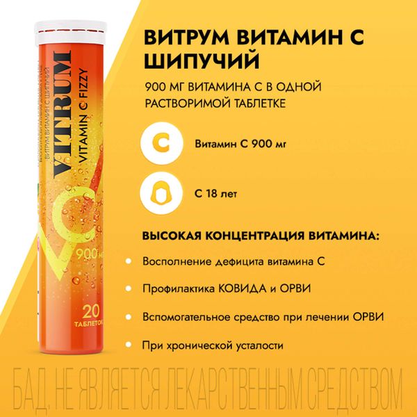 Витрум® Витамин С Шипучий — это восполнение дефицита витамина С, вспомогательное средство при лечении ОРВИ, гриппа, профилактика ОРВИ, при хронической усталости.