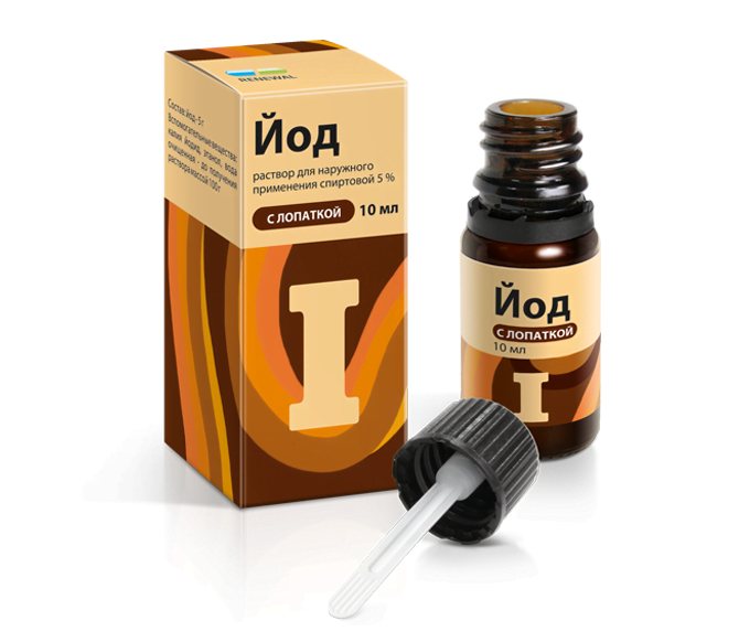 Йод раствор для наружного применения спиртовой 5% флакон с крышкой-лопаткой 10мл