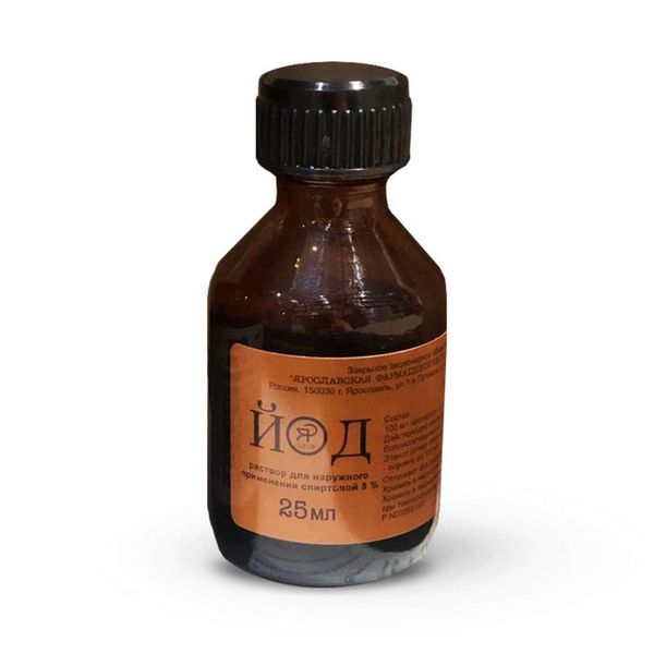 Активное вещество: йод — 5 г вспомогательные вещества: калия йодид — 2 г, этанол (спирт этиловый) 95 % и вода очищенная — поровну до 100 мл.
