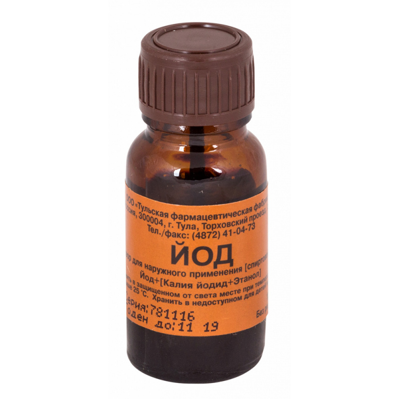 вспомогательные вещества: калия йодид 2,0 г, этанол (этиловый спирт) 95 % 48,4 г, вода очищенная до 100 мл.