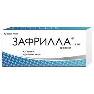 Нежелательные реакции (НР) чаще возникают в первые месяцы после начала терапии препаратом Зафрилла® и уменьшаются при продолжении лечения. Возможны изменения характера кровотечений, например, "мажущие" кровянистые выделения, нерегулярные кровотечения или аменорея. Самыми частыми НР, отмечаемыми при лечении диеногестом, являются головная боль, дискомфорт в молочных железах, депрессивное настроения и акне. Кроме того, у большинства пациенток, получающих диеногест, изменяется характер менструальных кровотечений. В течение первых 90 дней терапии диеногестом наблюдались следующие виды нарушений менструального цикла: аменорея, нечастые кровотечения, частые кровотечения, нерегулярные кровотечения, длительные кровотечения.
