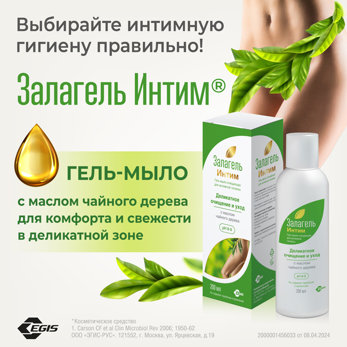 Гель увлажняющий для интимной гигиены ЗАЛАГЕЛЬ Интим с маслом чайного дерева (Melaleuca Alternifolia) в концентрации до 0,6%, со слабощелочным рН, оказывает охлаждающее и защитное действие, обеспечивая комфорт в интимной зоне.