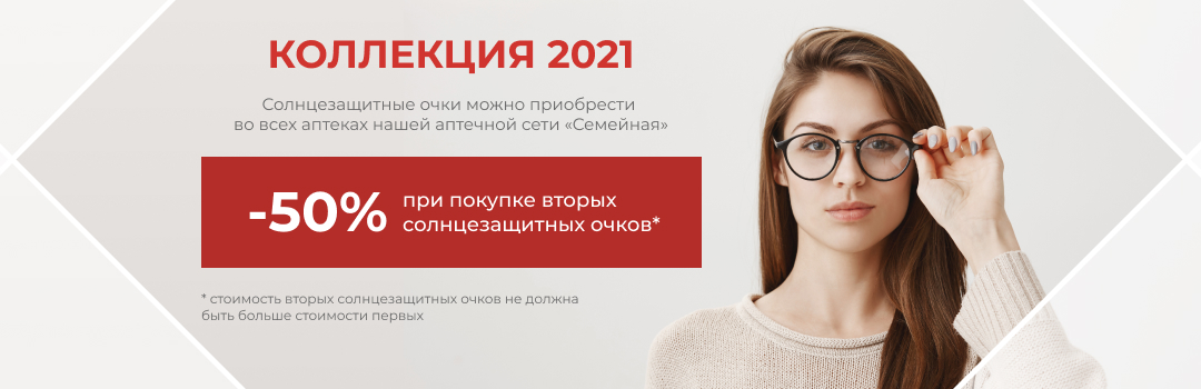 Однако очки – это не только модный аксессуар, но и всесезонная безопасность глаз. Поэтому купив в нашей аптечной сети «Семейная» солнцезащитные очки вы сохраните зрение и красоту глаз.