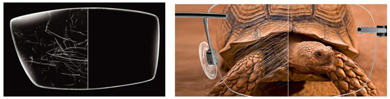Благодаря этому покрытию уменьшается количество бликов, мерцания и размытость изображения за счет значительного сокращения синего света. Блики вызванные рассеянием отраженного света (состояние, похоже, что на туманный пар) также снижается, и ощущение четкого зрения значительно улучшается.
